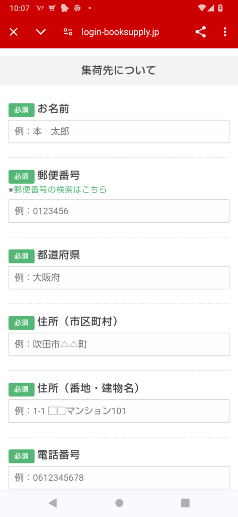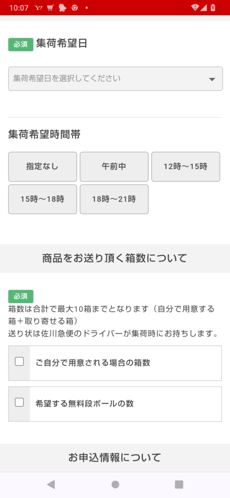 まずは集荷先の登録と、集荷の希望日を設定しました。