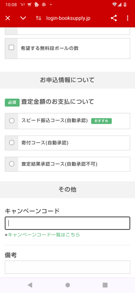 上記の「ブックサプライ無料査定」から申し込みをしました。