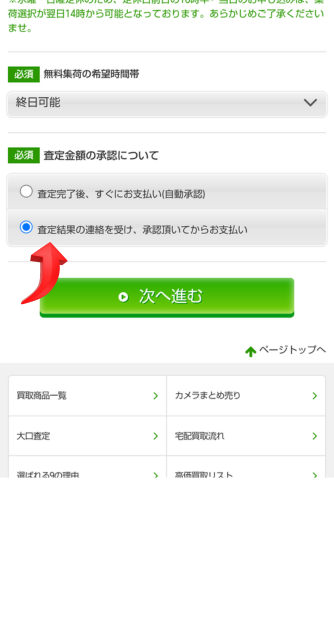 ※ここは注意が必要です。おすすめは「査定結果を受けてから承認」を選びましょう。「自動承認」は安く買い叩かれる可能性があり、キャンセルしたくてもできません。