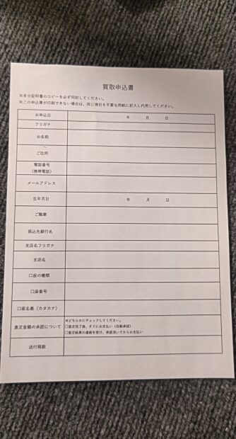 買取申し込み書をダウンロードし、印刷しましょう。そして必要項目を記入し完了です。