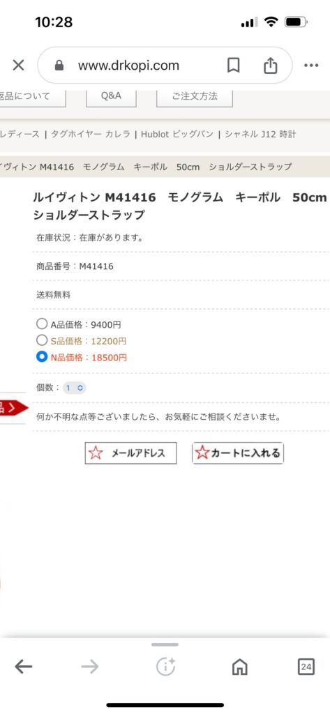 今回はもちろん一番クオリティも値段も高い「N品」を購入します。