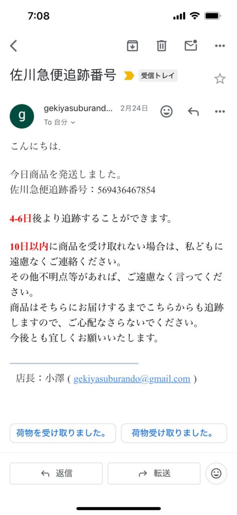 注文して待つこと12日後、突然家のチャイムが鳴った。佐川急便からでした。