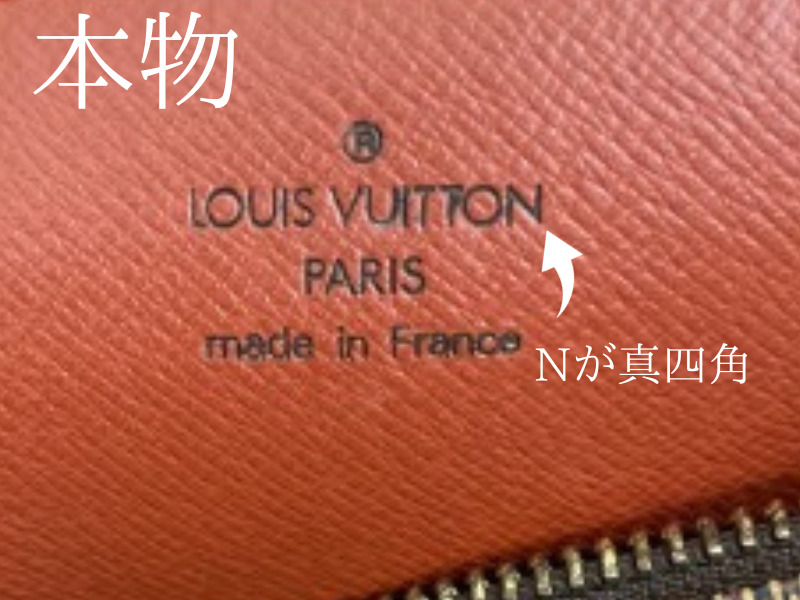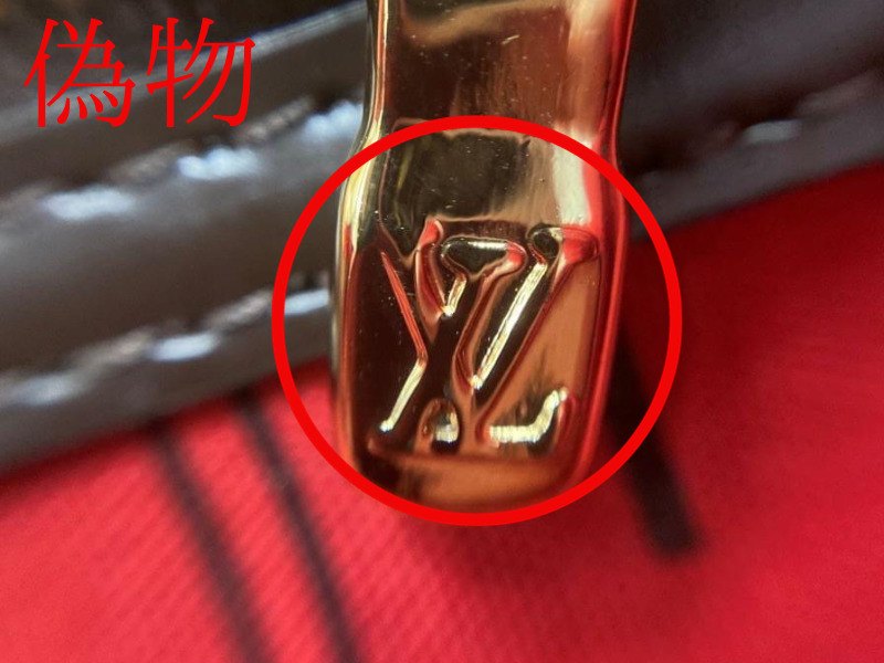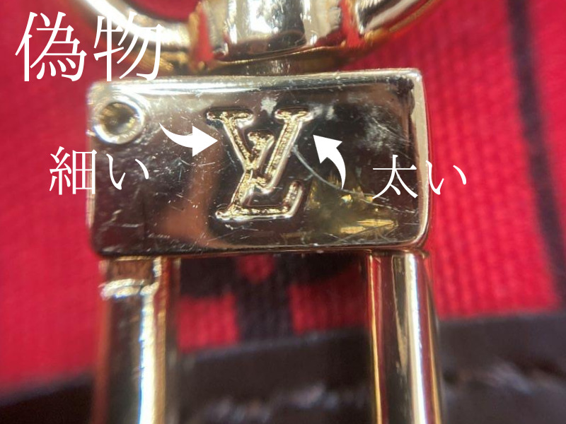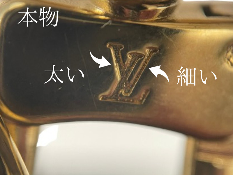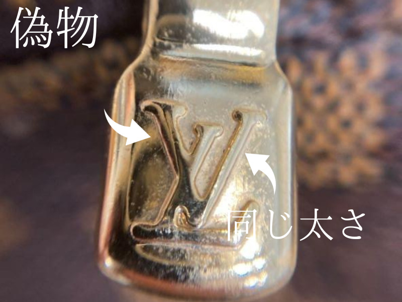本物はLVの文字の「V]の左側が太く右側が細いのが特徴です。