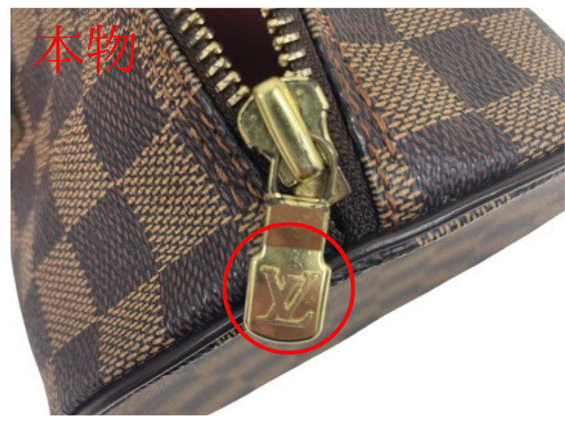 本物はダミエでもモノグラムでもファスナーは黄金色で綺麗なのが特徴です。
