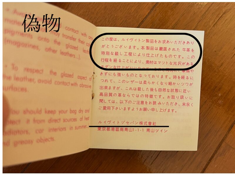 よくあるコピー品の真贋ポイントです!ほぼすべてのルイヴィトンの商品に共通するので覚えておこう。
