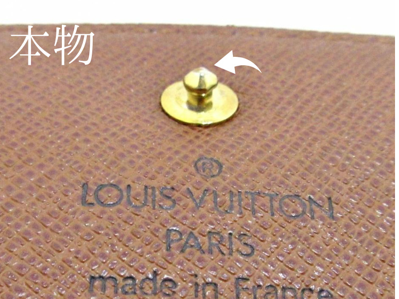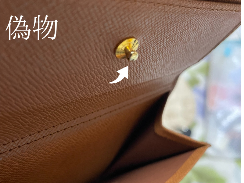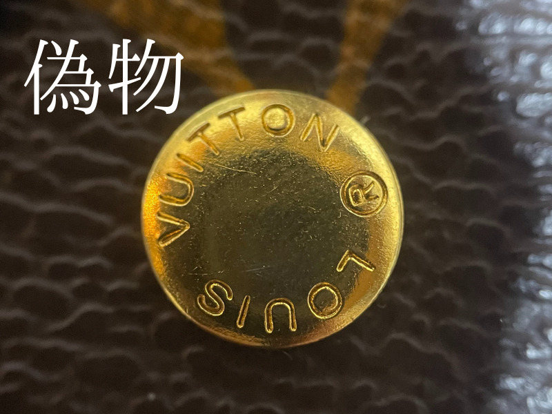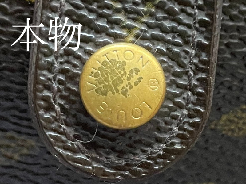 ルイヴィトンの長財布ではあまりないですが、2つ折り3つ折りの財布にはボタンが使われています。ボタンのオスとメスで真贋する事ができます。ボタンがあればバッグでも通用する真贋方法になります。