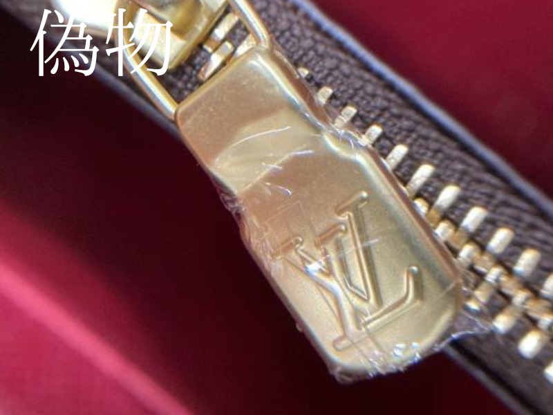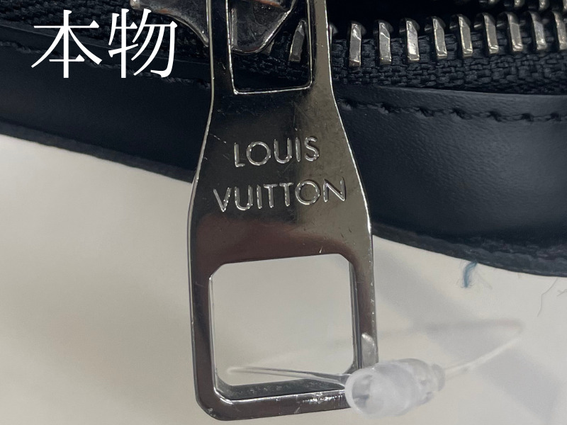 偽物でもここまできれいだと、見分けるのが難しいのが正直なところです。ファスナーだけみると本物に近いですが、違うところを真贋していくと偽物である事が判明しました。