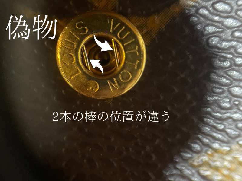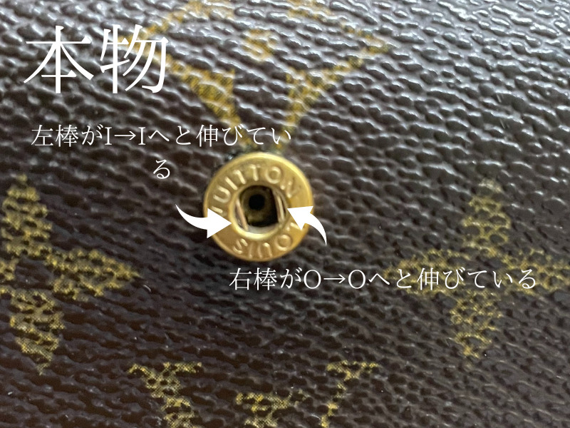 ルイヴィトンの長財布ではあまりないですが、2つ折り3つ折りの財布にはボタンが使われています。ボタンのオスとメスで真贋する事ができます。ボタンがあればバッグでも通用する真贋方法になります。