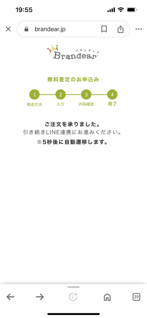 宅配買取の場合商品が到着してから1日~3以内には査定結果が出ます。メールでお伝えしたのちブランディアマイページにて金額を確認頂けます。申し込みはこちら