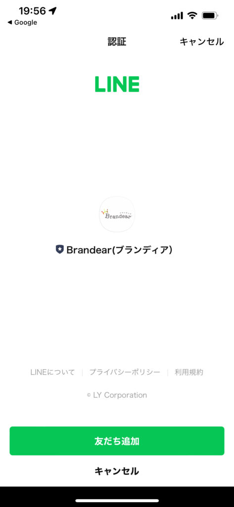 すべての入力を完了すると、自動的にLINE登録に切り替わり一応登録してみました。