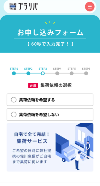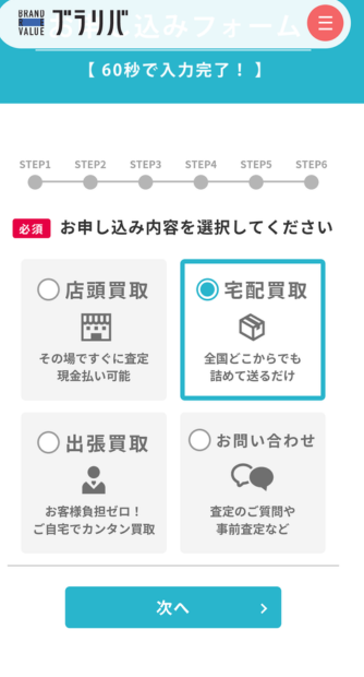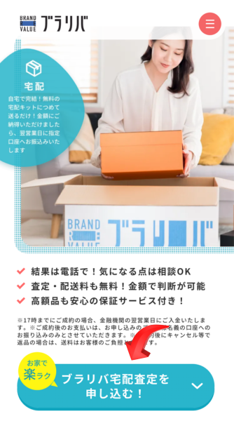 宅配買取にかかる送料や手数料はすべて無料です。またキャンセル時の返送料もすべてブラリバが負担します。宅配買取の申し込みはこちらから