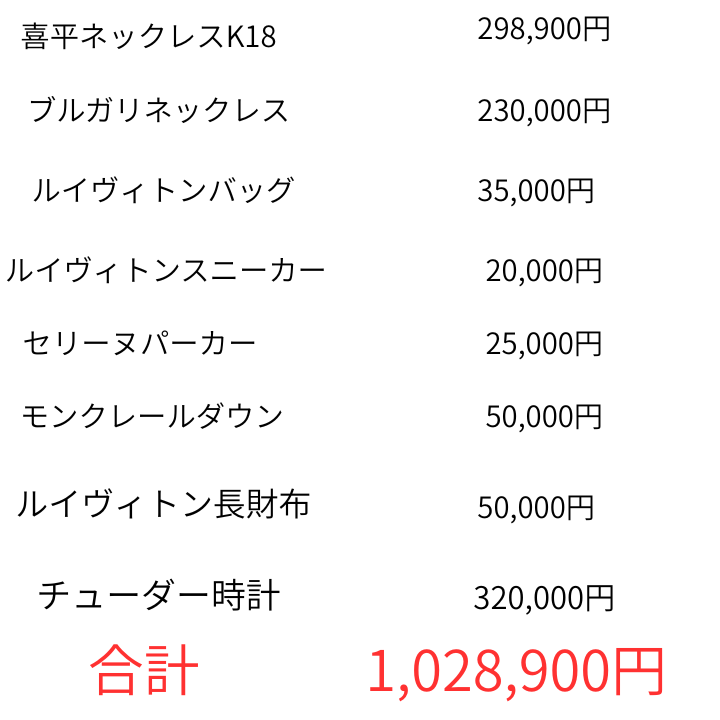 計8点で1,028,900円になります!