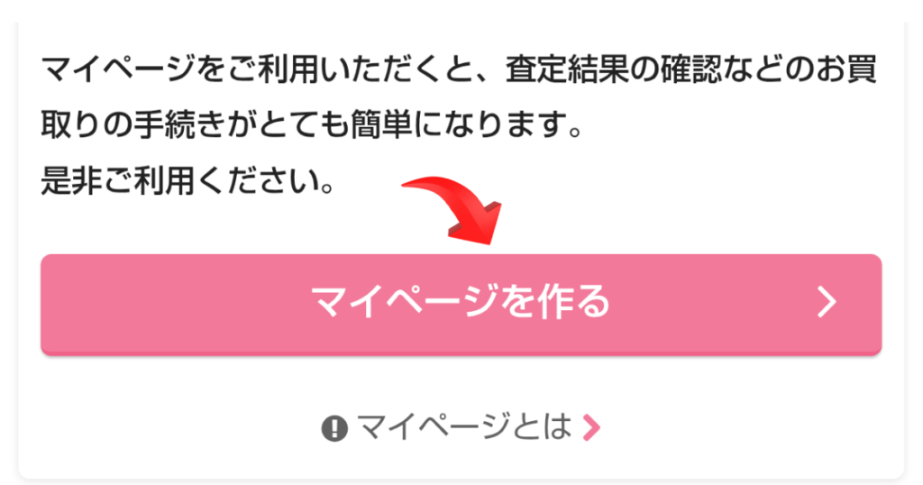 登録したメアドにパスワードが送られてきました。メアドの送られてきたURLをタップし「マイページを作る」を選択しましょう。