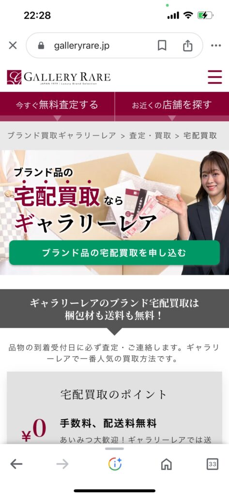 ギャラリーレアの店舗数は東京・大阪・名古屋の9店舗しかありません。そのため地方の方は利用するのは難しいと思います!そこでおすすめなのが宅配買取です。地方の方にも気軽に利用できます!しかもすべて無料なので気軽に利用できます。