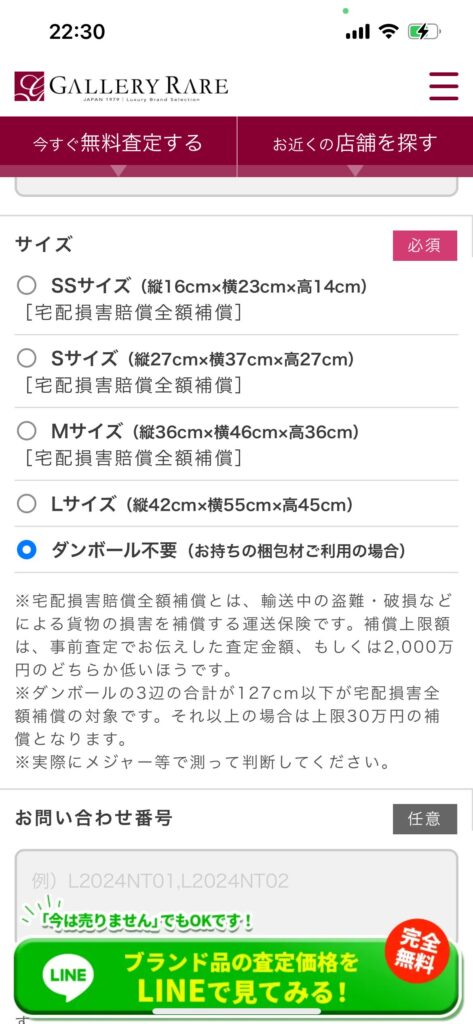 送料・キャンセル料(返品送料)・査定料すべて無料です。こちらから申し込みできます