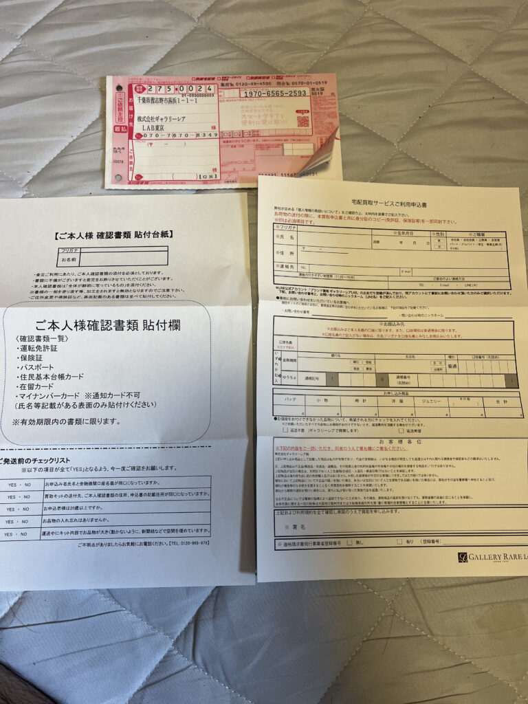 現在、出張買取をギャラリーレアは出張買取を行っていません。私のおすすめは宅配買取です。全国どこからでも発送できすべて無料で利用できます。