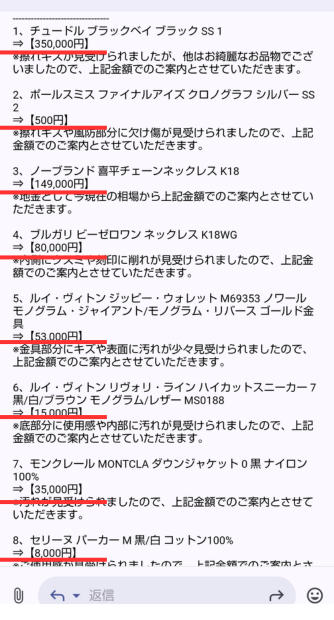 ブランドバッグはすごい高い金額をつけてくれましたが、洋服は思った以上に低く残念な結果となりました。