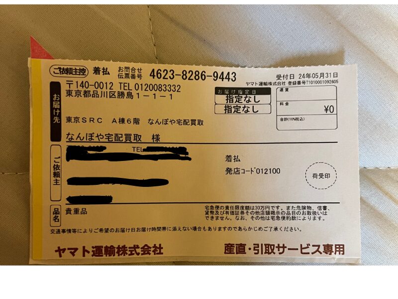指定した日時にヤマトさんが集荷してくれました。着払いなので自己負担がないのでうれしいです。あとは査定結果を待ちます!
