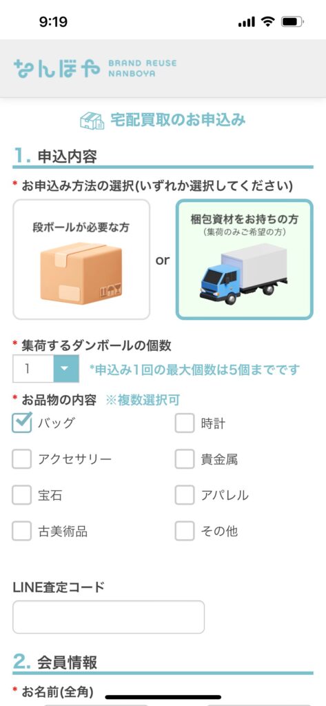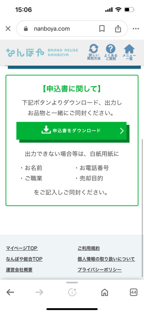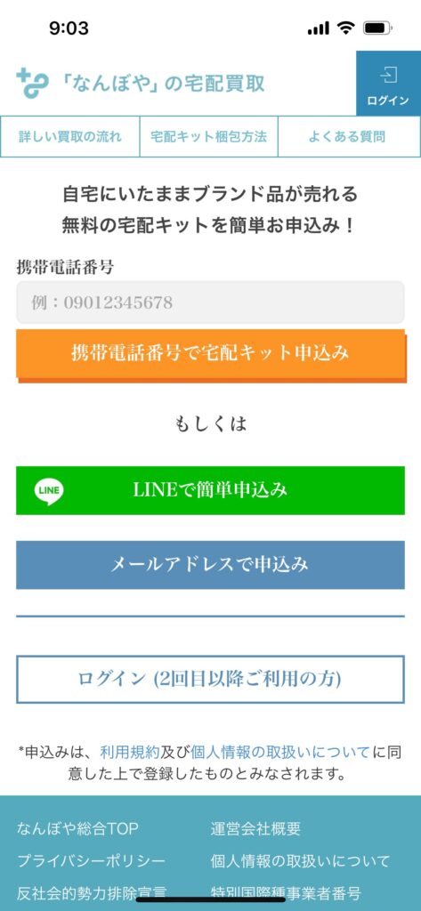 なんぼやの宅配買取は上記の「なんぼや無料査定」から申し込みをしてみました。