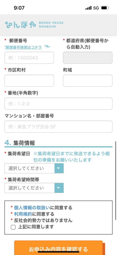 次に個人情報と集荷してもらう日にちを決め入力しましょう。