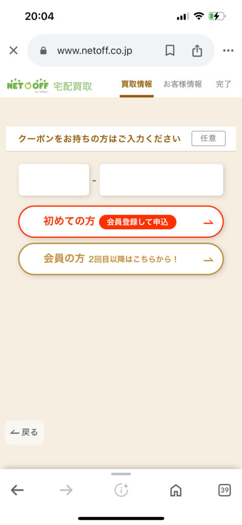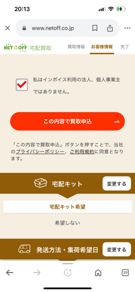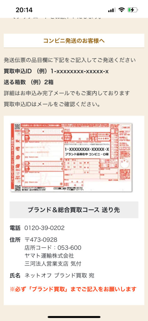 まずは段ボールの有無を選んだ後、次はコンビニ発送か集荷してもらうか選びます。今回は自分で段ボールを用意しコンビニ発送を選びました。※段ボールない方は無料でネットオフが準備してくれますのでご安心してください。