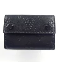 シックなブラックレザーにエンボス加工されたモノグラム柄が上品なアクセント。洗練されたデザインと高い実用性が魅力で、大人の女性にふさわしい一品です。