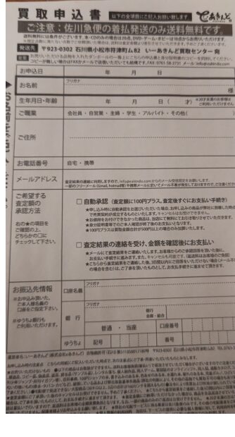 いーあきんどの無料査定からさっそく申し込みをしたいと思います。