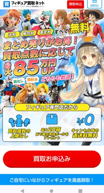 このサイトの一番の強みは私が査定に出し実証済みという点です!忖度なしで良かった業者を本気で選んでいます。あなたの大切なフィギュアを少しでも高く売れるように全力でサポートします!