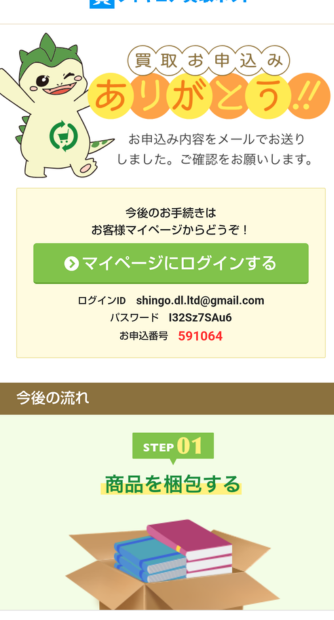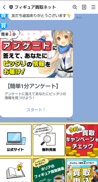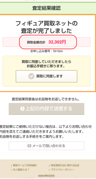 上記の「フィギュア買取ネット」無料査定から申し込みをしました。