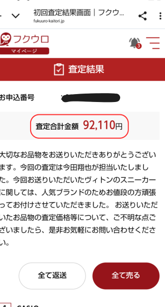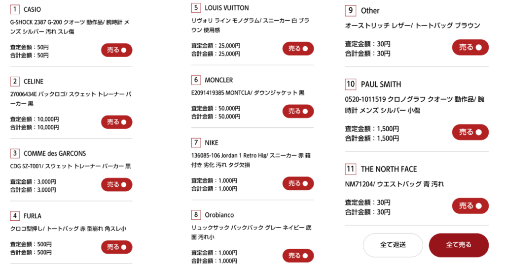 感想としては、ハイブランド服は相場通りの金額ですが、ミドルブランドやルイヴィトンのスニーカーは他社よりも高い金額がつきました。