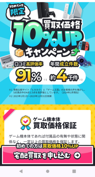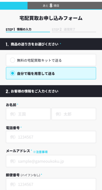 上記の「ゲーム王国無料査定」から申し込みをしました。2分あれば登録できます!