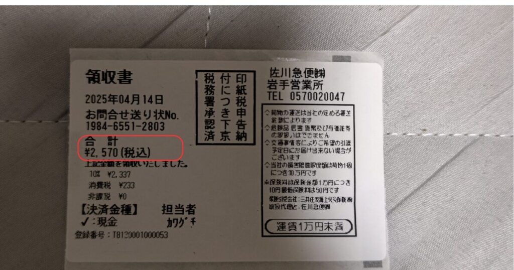 今回、相見積もりのため売らずに返送してもらいました。返送料は自己負担でした。大きい140サイズの段ボールだったため返送料は2,570円かかりました。