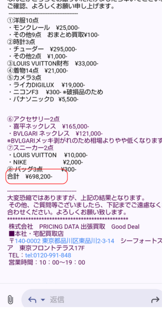 ただ、どの業者でもミドルブランドは高値がつかないことが多いので、仕方ないと感じています。