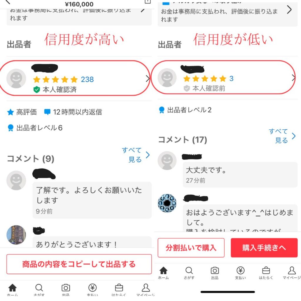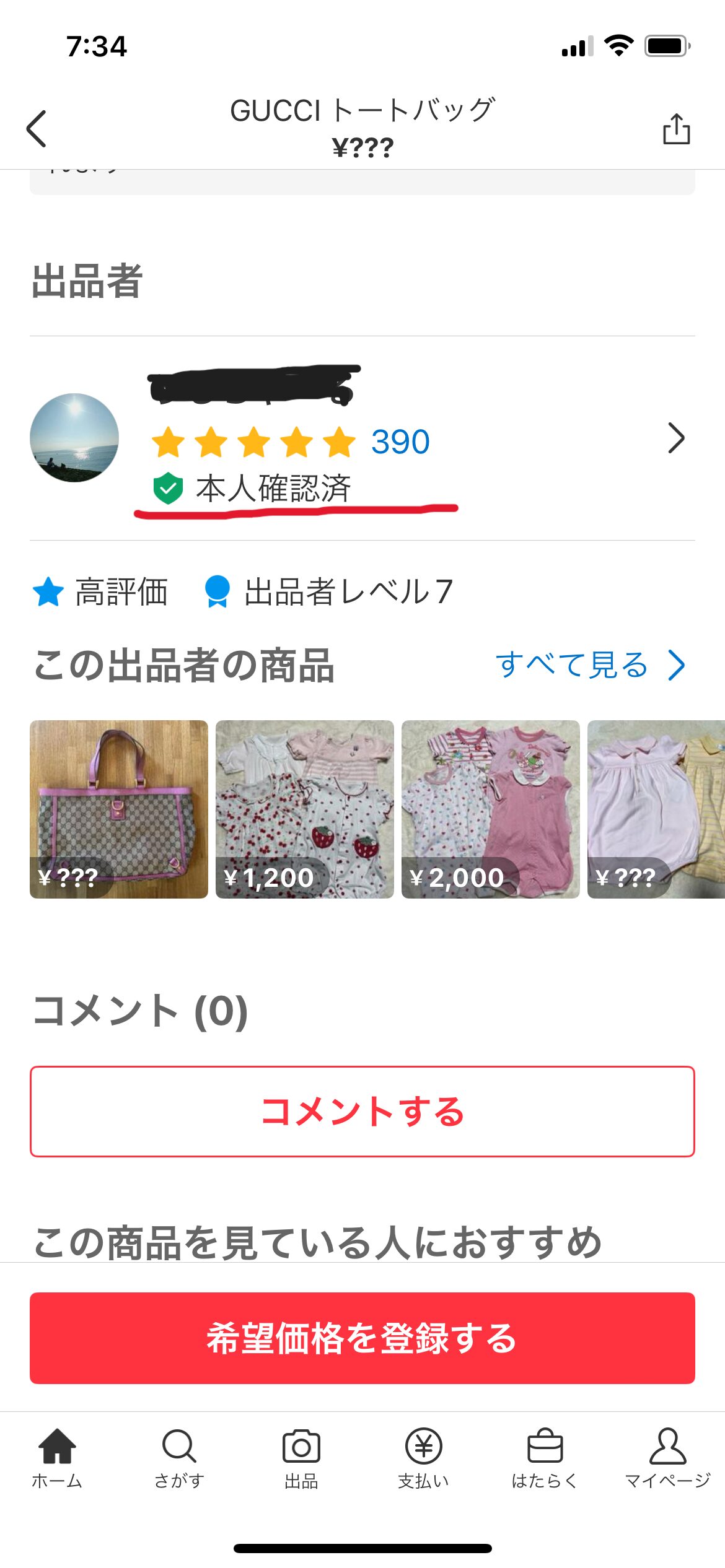 本人確認とはメルカリに対して免許証などを提出し、購入者に安心感を持たせるという取り組みです。逆に「本人確認済み」を提出している方は偽物を売らないという意思が感じられます。