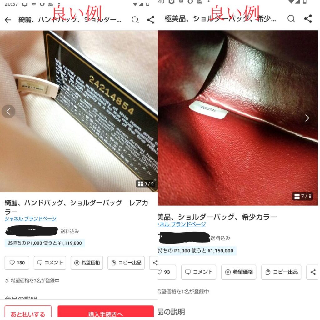 下記の写真は良い例です。シリアルナンバーをしっかり載せています。