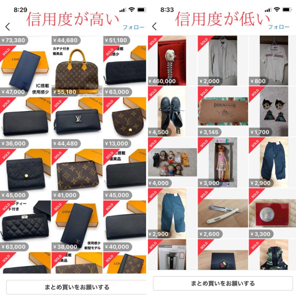 一方で右側の方は売っているジャンルがバラバラで専門性に欠けます。ジャンルが定まってない方から購入すると偽物を買ってしまうリスクがあります。