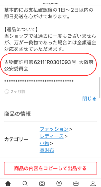 もし報告義務を怠った場合、古物商はく奪される可能性があります。古物許可証を記載している方から購入すると比較的安全です。