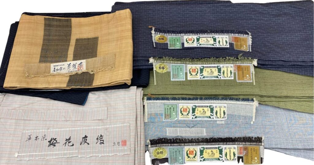 結城紬は証紙がないと残念ながら査定額が大幅に下がります。また汚れやシミ、身丈の長短、仕立てや使用感、保存状態によって買取金額は変動します。