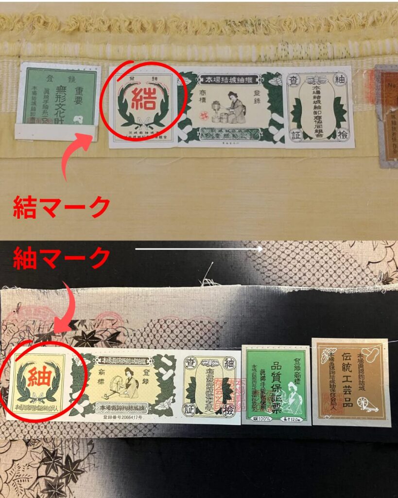 結城紬には結マークと紬マークの2種類があります。