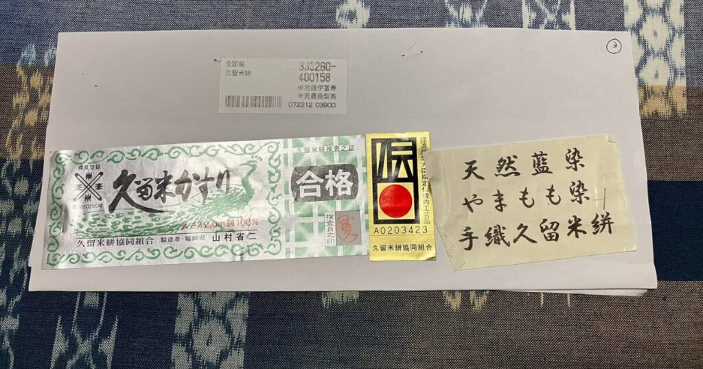 絣にはブランドがあり、例えば伊予絣、久留米絣、備後絣という地方によって呼び名が違います。