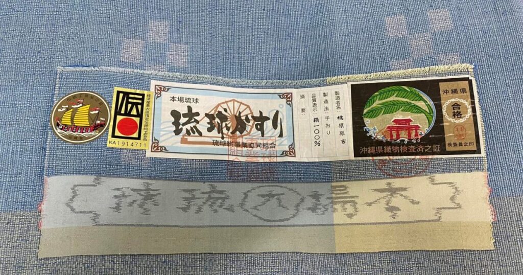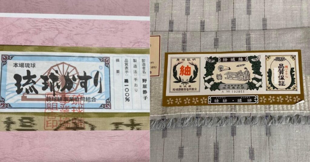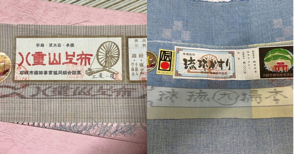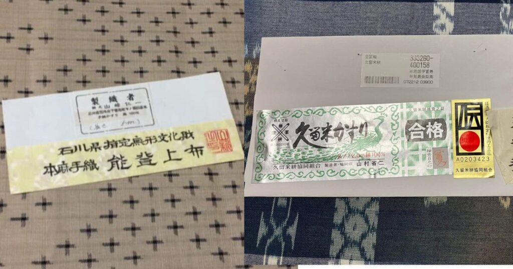 基本、紬・絣・上布には証紙が着物購入時付属していますが中には捨てたり、着物屋さんがあえて付けなかったりする場合もあります。
