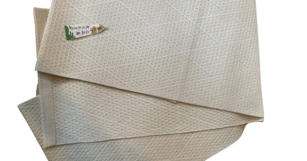 一本の糸が左右の糸と絡んで細かい目をつくるため、織るのは難しく熟練が必要でした。昔は衣服や飾りに使われ、軽くて涼しい生地でした。