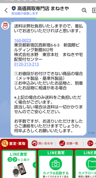 LINEにて指定されて住所に商品を送ってくださいとの指示がありました。