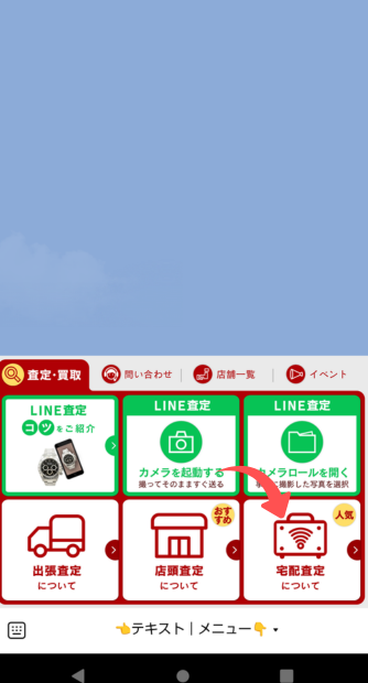 まずはLINE登録し「宅配査定について」をタップしましょう。