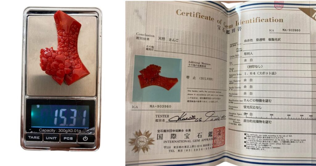 珊瑚の帯留めには金が使われている場合が多く、刻印があれば間違いなく高価買取が期待できます!ちなみに私が見てきた珊瑚の帯留めはK18が多かったです。