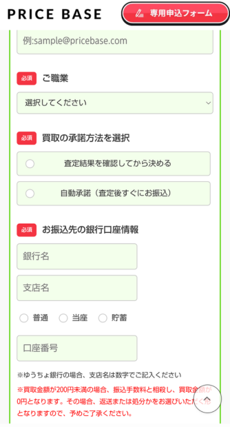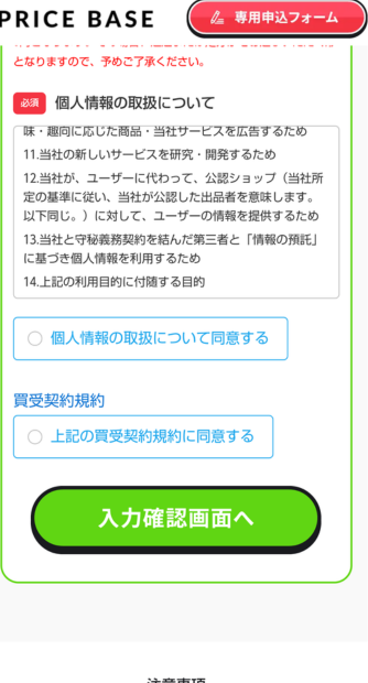 ・個人情報の入力と買取の承認方法の選択