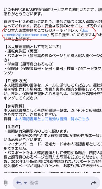 入力が終わるとすぐに登録したメアドにメールが届きます。「本人確認書類」を指定されたメアドに送る必要があります。本人確認書類を送信したら後は集荷を待つだけです。これで終わりです。お疲れ様でした♪