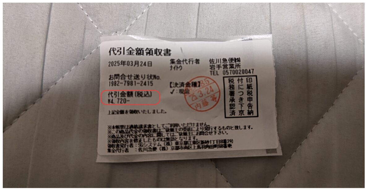設定した日時に配達業者さんが集荷してくれました。伝票は不要です。配達業者さんが持ってきてくれます。ダンボールに商品を入れ渡すだけでOKです。後は結果を待つのみです!