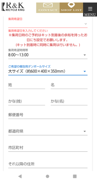 ダンボールが無くても無料で手配してくれます。集荷の日時設定と必要事項の入力をしたら同意し「申し込む」をタップしましょう。申し込みは簡単ですね。