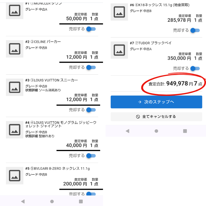 今回は他社比較で売却しませんでしたが、査定料や返送料が全て無料だったので、とても助かりました。